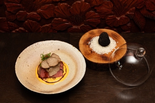 以大地馈赠为主题的九道套餐,菜式包括松露炸鸡与传统荞麦等。